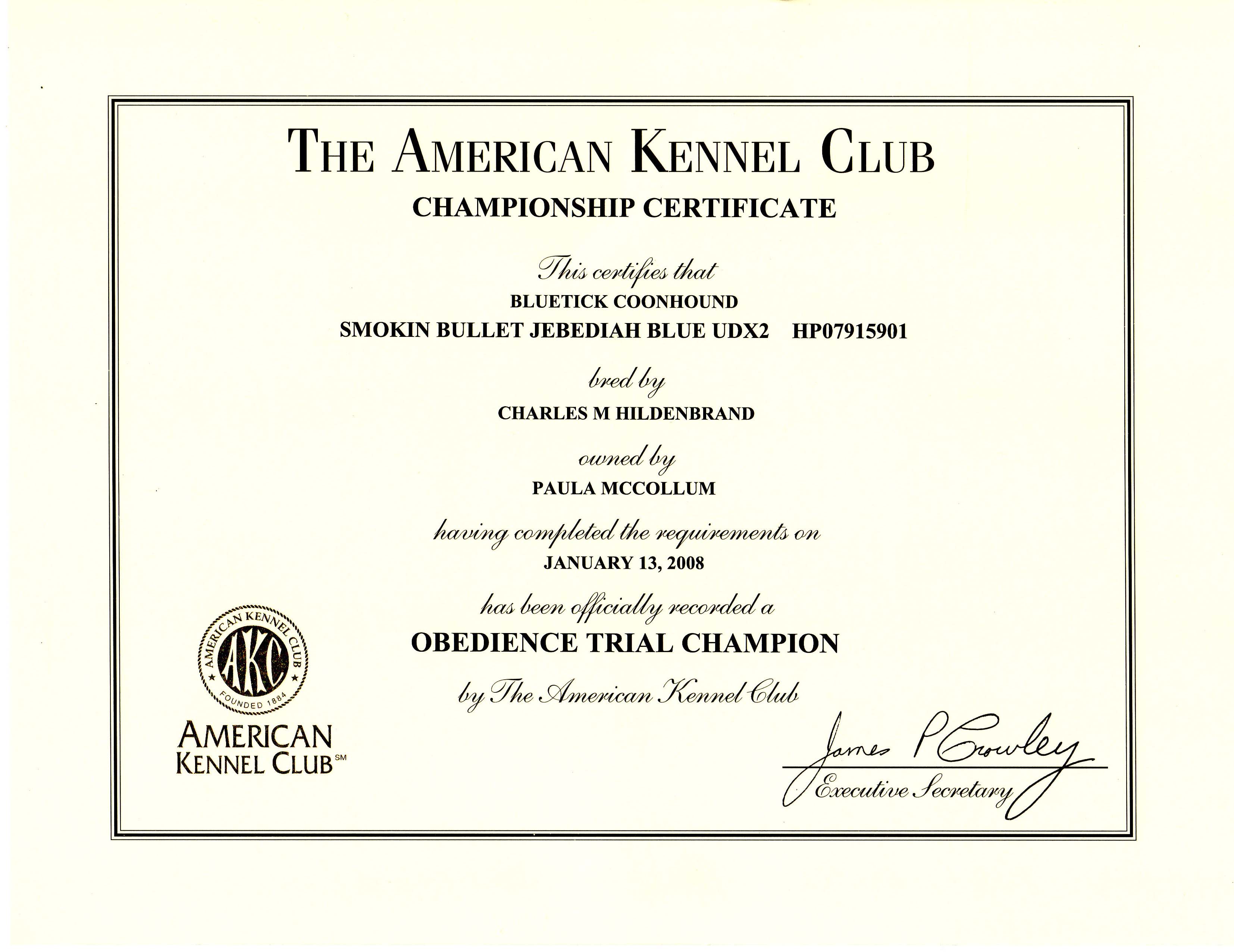 Trial Champion (OTCH). Jeb is also the first ever Coonhound